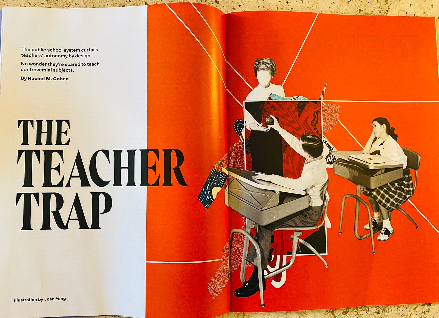 From early November through the end of February I worked on this piece for The New Republic’s April issue and yesterday it went online. I set out to understand how teachers were navigating the pressures around teaching controversial topics with the advent of “Critical Race Theory” bills. I also wanted to understand what parents organizing against CRT think of their teachers’ fears about retaliation. Do they worry about a chilling effect, too?